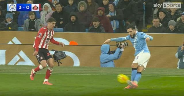曼城迎戰賽季兩大黑馬之一桑德蘭,又見老劇本出籠。魯本·迪亞斯在禁區開外5米拿球,誰也沒覺得那是他發飆怒射的前兆,至少瓜不大喜歡中衛這么莽撞。就像7年前的隊長孔帕尼,帶著帶著按捺不住,頂著隊友呼喊“隊長隊長,別射,有我!”咣當一腳,皮球直躥死角。迪亞斯十足老隊長附體,一記88毫米平射,皮球在孔帕尼當年掛網的位置進了!