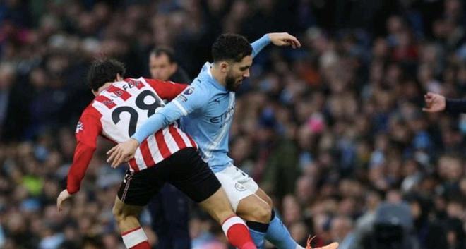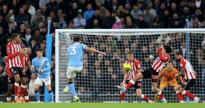 面對來勢洶洶的桑德蘭,曼城從比賽一開始就展現出了強大的控制力。他們利用嫻熟的傳控和不斷的跑動,將比賽節奏牢牢掌握在自己手中。盡管桑德蘭的防守組織嚴密,試圖通過密集的防守來限制曼城的進攻空間,但在藍月軍團持續的壓力下,球門失守只是時間問題。第31分鐘,僵局被以一種極具觀賞性的方式打破。曼城后防大將魯本·迪亞斯在中場附近接到皮球,稍作調整后,他突然起腳遠射。皮球如同一出膛的炮彈,帶著強烈的旋轉直掛球門死角,對方門將對此毫無反應。這記驚世駭俗的世界波,不僅為曼城取得了領先,也徹底點燃了主場的氣氛。