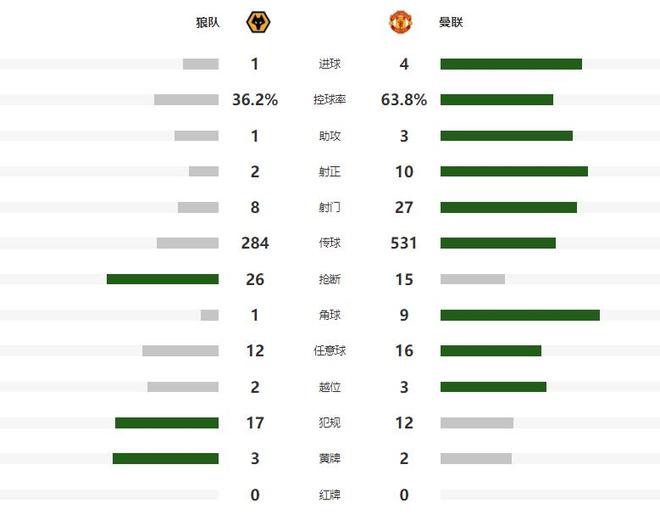 第62分鐘曼聯終結勝負懸念,B費大禁區前沿挑傳,突然前插的芒特獲得了無人盯防起腳的機會,后者輕松推射破門,將領先的優勢擴大到了3-1,第81分鐘狼隊禁區內手球,送給了曼聯一粒點球,B費穩穩主罰命中,將比分定格為了4-1。