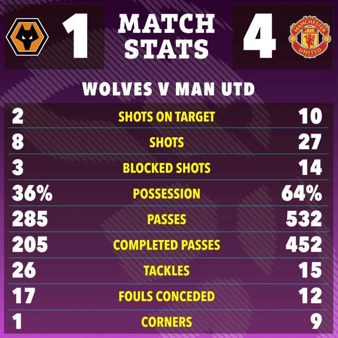 曼聯(lián)做客莫里紐克斯球場(chǎng)4-1大勝狼隊(duì),排名升至英超第6位,與第5名切爾西同分,但凈勝球少6個(gè)。雖然本場(chǎng)大勝,但如果想要實(shí)現(xiàn)沖擊歐冠的目標(biāo),紅魔的攻防仍需大幅度改善。這場(chǎng)取勝,主要因?yàn)橹麝?duì)太差!