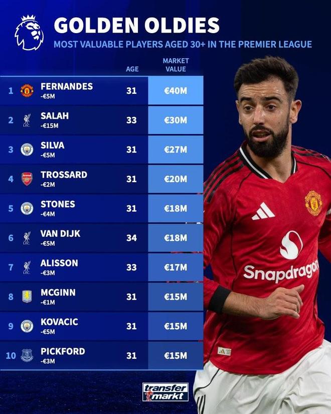 12月9日,德國轉會市場更新了英超球員的最新身價,隨后,他們列舉了英超聯賽中30歲以上身價最高的球員排行榜。