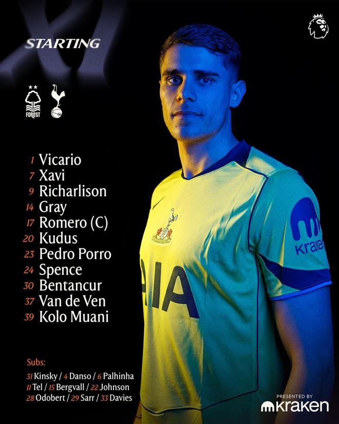 熱刺首發:1-維卡里奧、17-羅梅羅、37-范德芬、23-波羅、24-斯彭斯、30-本坦庫爾、14-阿奇-格雷、7-西蒙斯、39-穆阿尼、20-庫杜斯、9-里沙利松