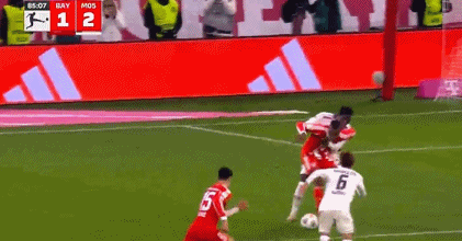 然而上半場最后時刻,拜仁的防守卻出現漏洞。第45分鐘,威廉-伯溫右路定位球傳中,波圖爾斯基無人盯防的情況下頭槌建功,諾伊爾站在原地目送,美因茨壓哨扳平,1-1!